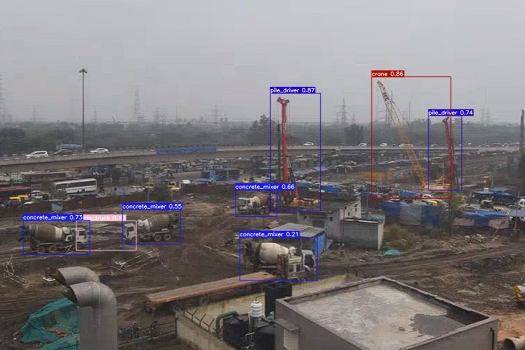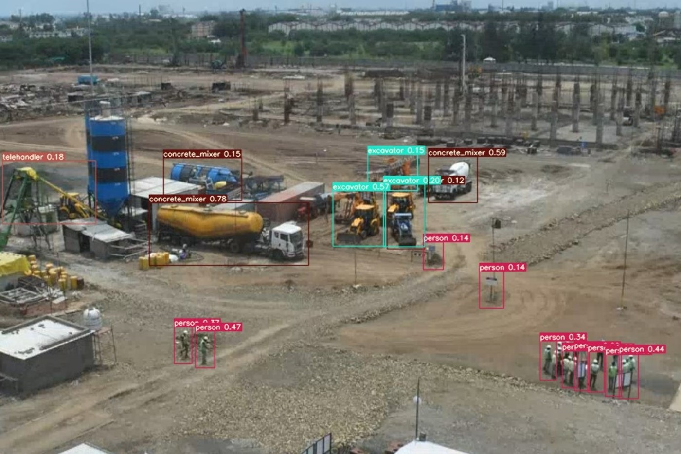 Captured images are processed for construction vehicle, equipment & workers detection.
